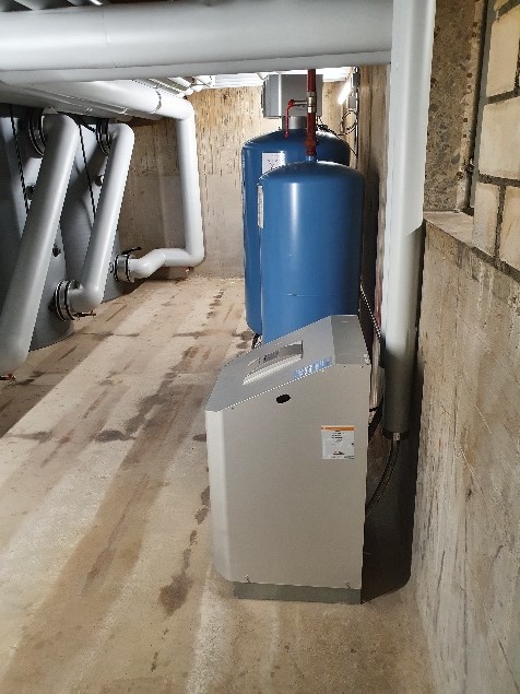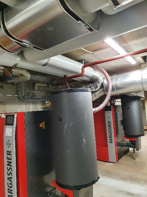 Als neue Wärmeerzeugung wurden zwei Pellet-Heizkessel eingebaut. Die alten Heizöltanks in den Lagerräumen wurden entsorgt die beiden neuen Pelletlager eingebaut.